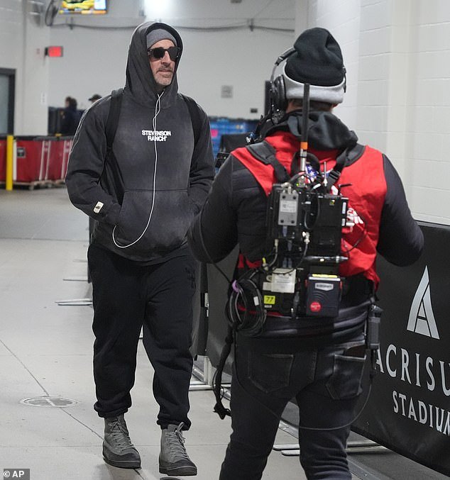 El mariscal de campo de los Pittsburgh Steelers, Aaron Rodgers, llega antes del juego de comodines del lunes