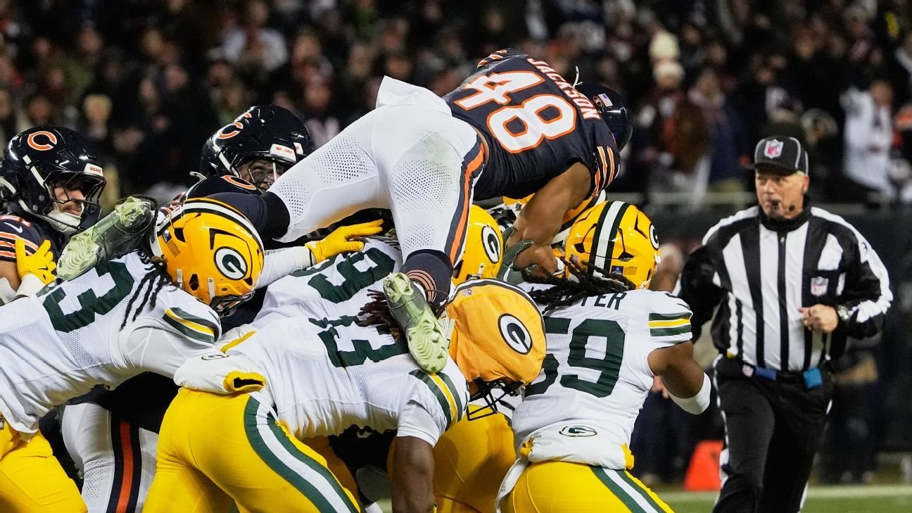 En el juego nocturno, los Green Bay Packers visitan a los Chicago Bears en una batalla crítica de la NFC Norte.