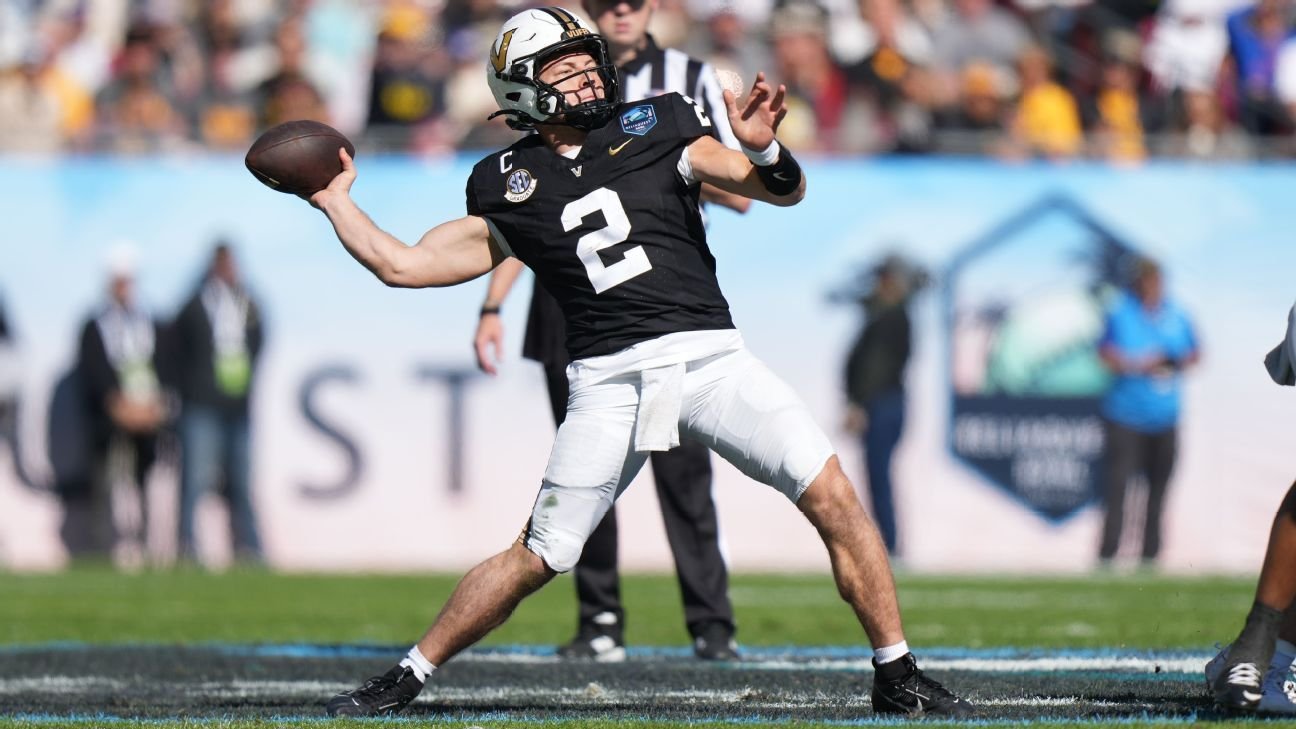 Kyle Bonagura: La increíble temporada de Diego Pavia, que guió a Vanderbilt a 10 victorias, fue lo suficientemente buena como para colocarlo en segundo lugar en la votación del Trofeo Heisman. A pesar de este consenso, aquí cayó al noveno lugar. La derrota ante Iowa en el Reliaquest Bowl probablemente influyó en esa caída, pero más de una manera fuera de la vista y fuera de la mente, ya que Pavie jugó bien en ese juego.