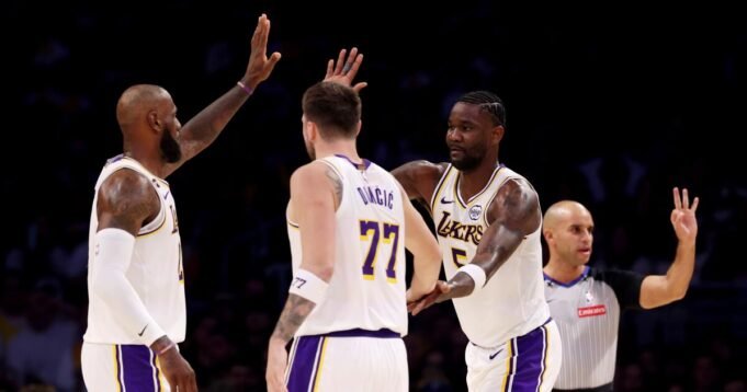 Los Lakers desplegaron una defensa zonal para iniciar el segundo cuarto. El tamaño de una alineación con Ayton de 7 pies, Jarred Vanderbilt de 6-8, James de 6-9 y Drew Timme de 6-10 con Marcus Smart de 6-3 como armador fue impactante de ver en persona, admitió Redick. Pero la defensa zonal fue clave para frenar el ritmo de un equipo que intentaba sobrevivir a su quinto partido en siete días.