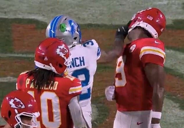 Fue provocado por el back defensivo de los Lions, Brian Branch, quien reemplazó a Smith-Schuster al final del juego después de ignorar a Patrick Mahomes cuando extendió la mano para estrecharle la mano. Es casi seguro que Branch enfrentará medidas disciplinarias por parte de la NFL por instigar la pelea.