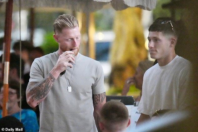 Ben Stokes (izquierda) y su compañero Matthew Potts aparecen en la foto durante el descanso del equipo en Noosa, en la Sunshine Coast de Queensland, que ahora es objeto de una investigación por parte del equipo.