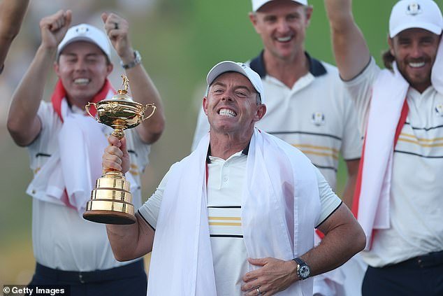 En un video que circuló el sábado, se puede ver a McIlroy limpiándose algo de su sombrero y preguntándole si se fue bien mientras se alejaban del stand de los fanáticos ruidosos, rodeados de seguridad para el equipo europeo.