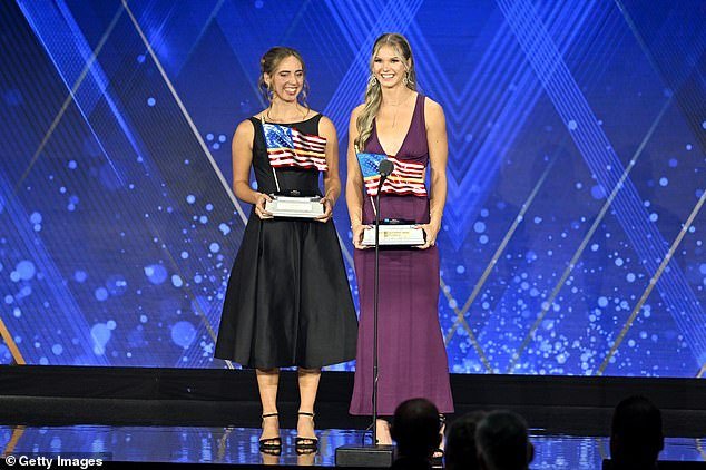 Reese Eckard (izquierda) y Alexa Anderson aceptan el jueves el Premio Patriota Más Valioso