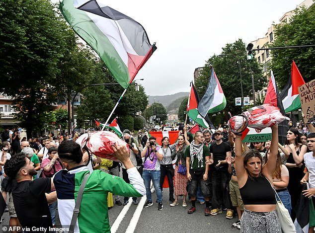 Israel Premier Tech, un equipo de ciclismo, fue el objetivo principal de las manifestaciones, con un grupo que detiene a los corredores de Figueres, y las banderas y los graffiti se han exhibido desde entonces.