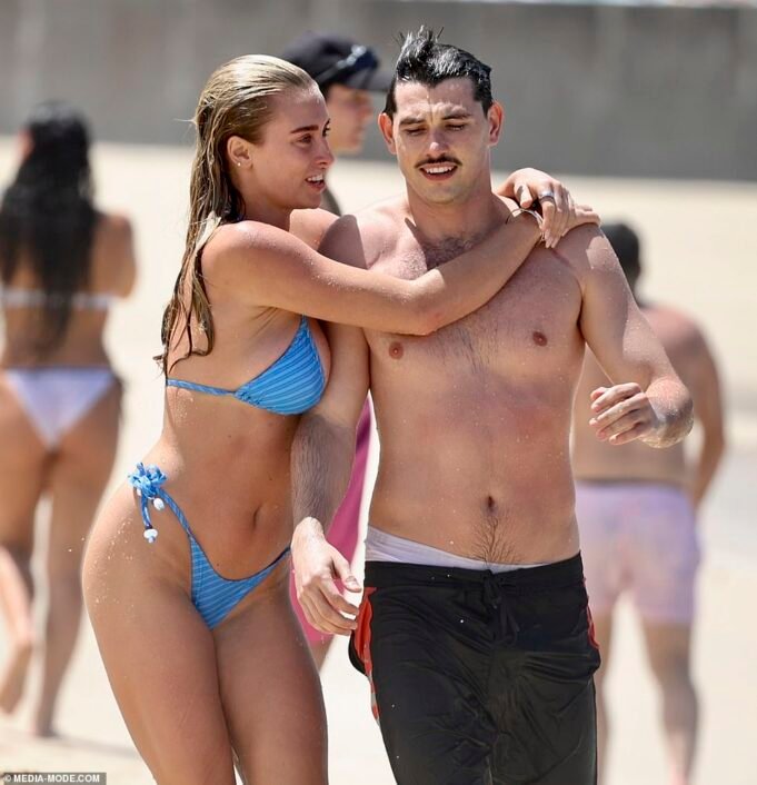 Grace Hayden tiene una relación a larga distancia con su pareja Wilson Statham y la pareja recuperó el tiempo perdido juntos cuando visitaron Bronte Beach en Sydney el domingo (en la foto)