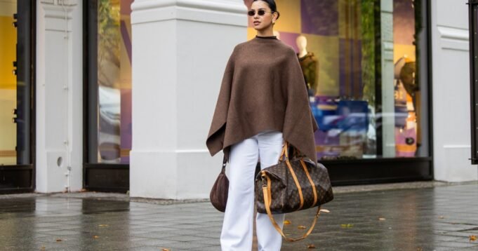 BERLÍN, ALEMANIA - 25 DE NOVIEMBRE: Laura Noltemeyer luce un cárdigan de punto con textura color crema, silueta estructurada y cierre de botones dorados de Massimo Dutti; pantalones de mezclilla rectos azul claro con ligero desteñido y corte clásico de Zara; botas con plataforma de cuero monograma en marrón oscuro y gris pardo con suela de goma gruesa y detalles de gamuza de Louis Vuitton; un bolso con asa superior de cuero estructurado blanco en tejido intrecciato y silueta trapecio llamado “Intrecciato Tote” de Bottega Veneta; gruesos aretes esculturales de oro de Zara; Su cabello castaño oscuro está suelto, liso y con raya en el medio el 25 de noviembre de 2025 en Berlín, Alemania. (Foto de Moritz Scholz/Getty Images)