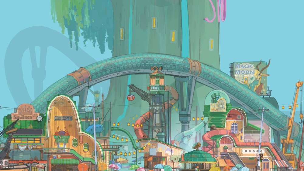 Bush dice que los animadores se inspiraron en los pantanos de Luisiana «pero también nos fijamos en los mercados flotantes del sudeste asiático. Eso es una gran parte, porque estamos hablando de comunidades costeras en general».