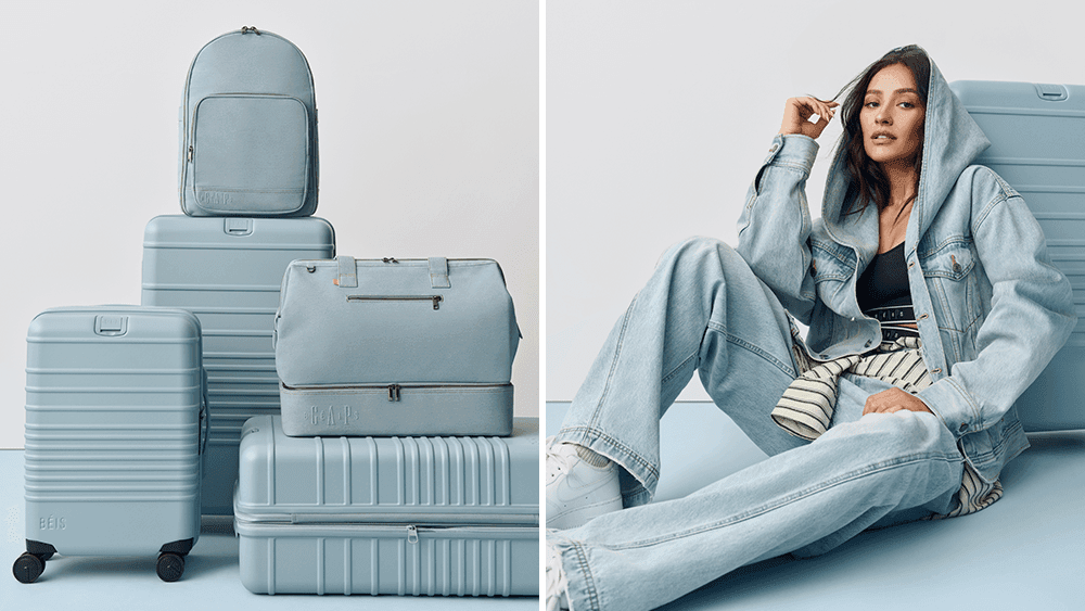 La colección tiene ropa versátil y abarrotable en tonos de firma neutrales de Beís (bahías beige, negras y rosadas favorables para los fanáticos, mientras que el equipaje y los accesorios se hacen de azul inspirados en la mezclilla. Las piezas notables incluyen pantalones de carga convertibles que se convierten en pantalones cortos, una combinación de diademas que se pliega en pantalones y una campana de viaje con una almohada integrada de cuello inflable. Los aspectos más destacados del equipaje incluyen el rodillo de equipaje de firma a mano de la marca y el gran rollo de grabación, ahora ofrecido en un acabado de textura de mezclilla limitada, así como una mochila a juego y viajes. Los precios varían de $ 8 a $ 128 para ropa y $ 128 a $ 378 para equipaje.