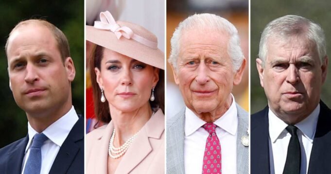 El príncipe William, Kate Middleton, el rey Carlos III y Andrew Mountbatten-Windsor.