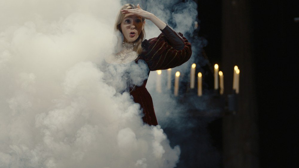 La película en sí es mucho más flexible: una farsa en la noche de estreno en la que todo lo que puede salir mal sucede en las tres horas previas a que se levante el telón. Que la obra es “Macbeth» – y que a nadie le importa la superstición que rodea el nombre – subraya el enfoque jocoso y guiño de los cineastas.