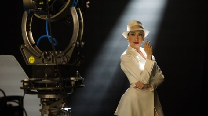 Las dos historias están estrechamente vinculadas a través de los personajes. Para Aurora’s Lair, Chambliss se inspiró en los musicales de la época dorada de Hollywood, incluida la película de 1953 «Sombrero»..» «Cyd Charisse baila en un estudio de sonido en la cima de una montaña falsa con el fondo pintado bidimensional justo detrás de su cabeza y estas ridículas esculturas y rocas. Es lo más fabuloso que jamás haya existido», dice. La pura artificialidad de la escena era algo que él y Condon querían capturar. «La propia guarida de la Mujer Araña fue el momento perfecto para hacerlo».