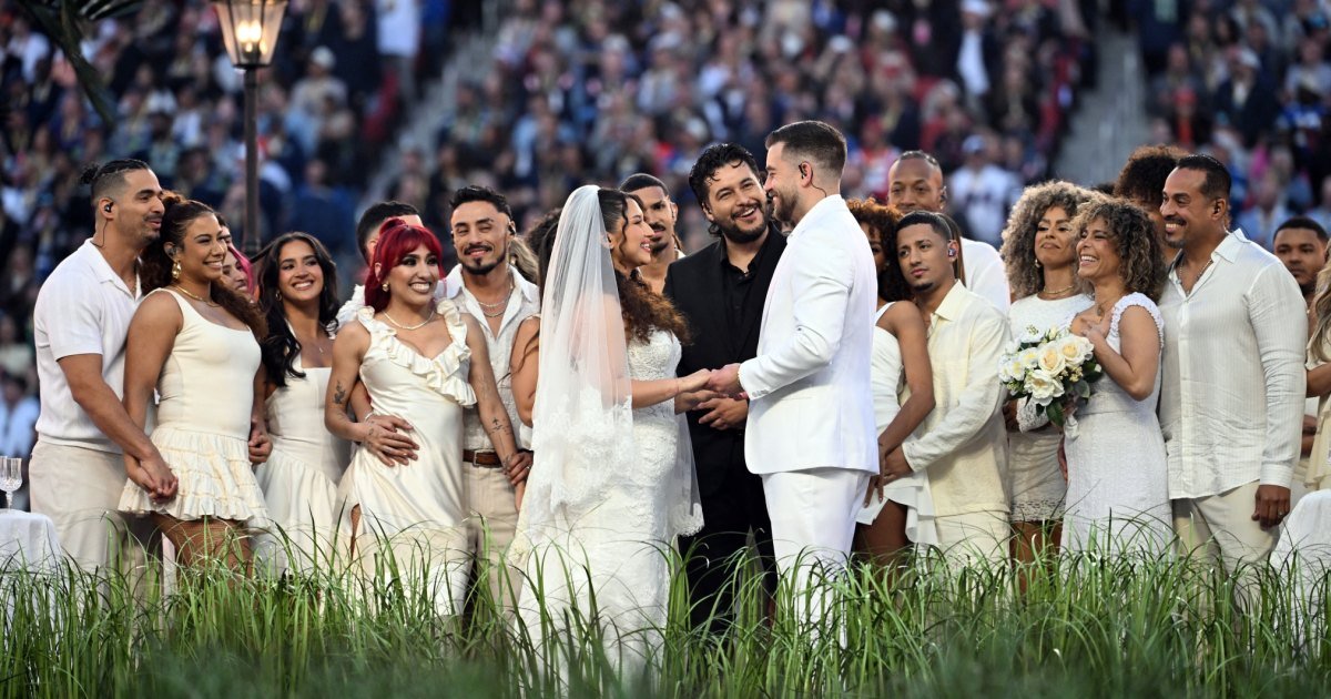 El pastor que ayudó a una pareja a casarse conejito maloEs Supertazón El espectáculo de medio tiempo comparte detalles detrás de escena del momento romántico.