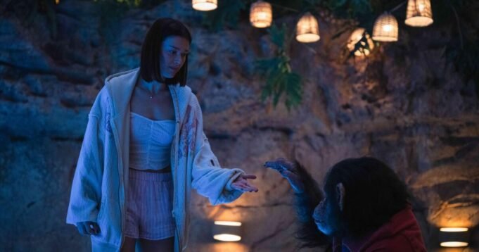 Umba, el especialista en movimiento bajo los efectos especiales simiescos, convence. Pero la película trata a su personaje como un villano slasher genérico que marca los tropos estándar: la sorpresa espeluznante, el telar borroso, el ritmo donde el villano parece derrotado pero de alguna manera se tambalea sobre sus pies prensiles. Roberts no ofrece mucha empatía por la pobre criatura enferma, aparte de una pausa en la que Ben reflexiona momentáneamente sobre su reflejo en una piscina mientras tintinea la espeluznante partitura de piano sintetizada de Adrian Johnston.
