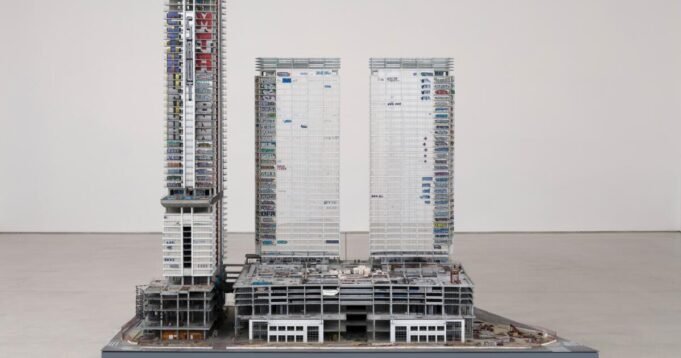 Como resultado, la artista de Los Ángeles Sayre Gomez construyó un modelo increíblemente preciso de las torres, que ahora podrá verse hasta el 1 de marzo en su exposición “Precious Moments” en la Galería David Kordansky. Creada a partir de imágenes de las torres reales capturadas con drones, la escultura mide más de 8 pies de alto y es increíblemente precisa, registrando los detalles de cada obra de graffiti, las texturas del concreto y el hierro, así como los escombros de construcción abandonados al azar en el sitio. La atención de Gómez al recrear estos matices no sólo ofrece vistas de las torres que no se pueden ver desde la calle, sino que pide a los visitantes que presten atención al desperdicio, el abandono y las posibilidades frustradas que simbolizan en nuestro núcleo urbano.