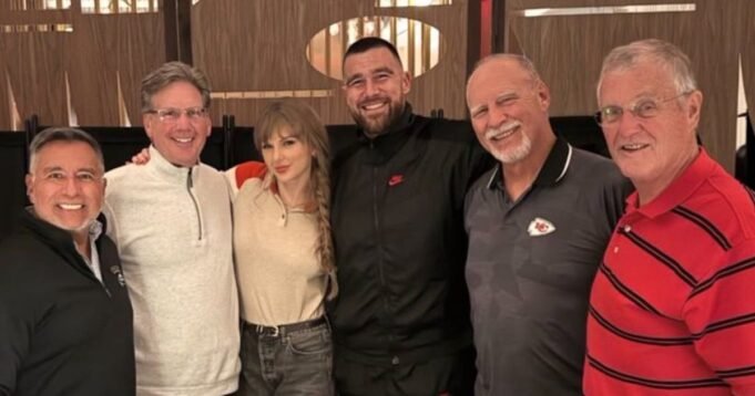En una foto compartida a través de un incógnita cuenta de fan el martes 26 de noviembre, Taylor, de 35 años, posó con los brazos alrededor de su prometido. Travis Kelce y su padre, Scott Swift. Una leyenda compartida junto a la feliz instantánea decía: «Taylor Swift, Travis Kelce y Scott Swift en 1587 Prime después del partido de los Chiefs el domingo». »