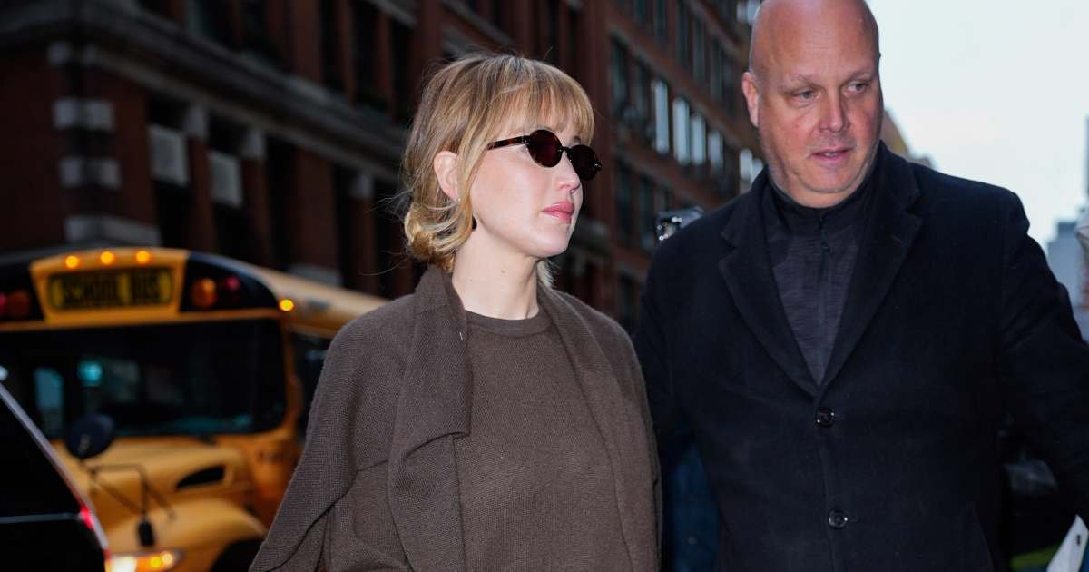 Durante su estancia en Nueva York el 29 de octubre, el muere mi amor actriz dio una clase magistral en un tranquilo vestidor de lujo. Lawrence vestía un suéter marrón con otro tejido a juego, una falda midi negra, tacones puntiagudos y gafas de sol ovaladas. La inesperada combinación de jersey y suéter elevó instantáneamente su apariencia, y es una truco de $ 15 Estamos copiando para el otoño.