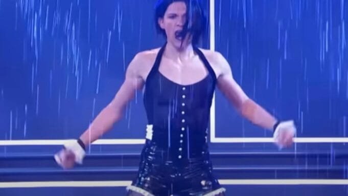 «Cuando trabajé con el equipo creativo que vino las ideas, de alguna manera lanzaron este» paraguas «, y mientras repitimos, se volvió loco», dijo. «Y luego llegó la máquina de lluvia. Y luego me dije a mí mismo:» Joder, quiero usar redes de pesca y hacer eso, y quiero una peluca y un cambio rápido. «