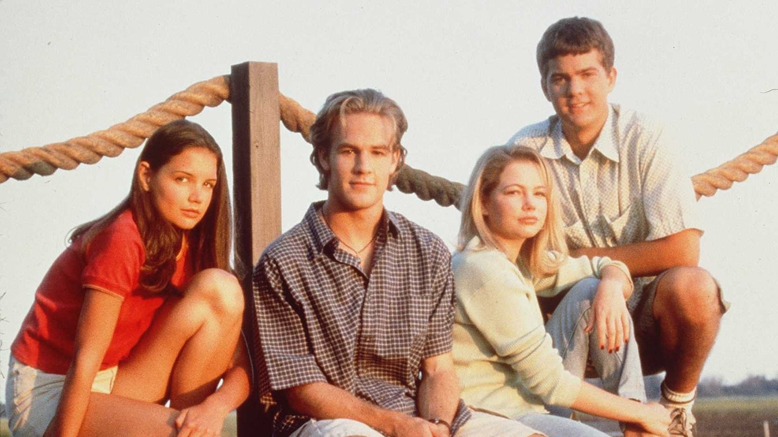 El elenco de «Dawson’s Creek». De izquierda a derecha: Katie Holmes (Joey Potter), James Van Der Beek (Dawson Leery), Michelle Williams (Jennifer Lindley) y Joshua Jackson (Pacey).