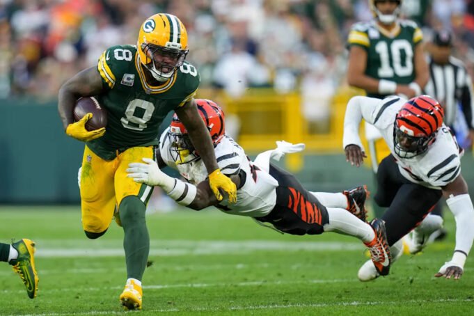 No habrías sabido que Josh Jacobs se sentía mal durante su actuación de dos touchdowns el domingo. El corredor de los Green Bay Packers fue golpeado por algo duro cuando despertó, pero no fue suficiente para frenarlo contra los Cincinnati Bengals.