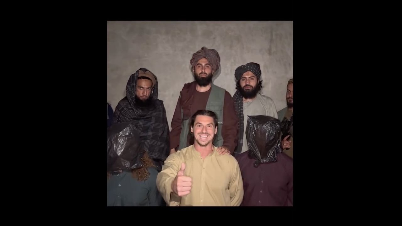 Por suerte, este vídeo tomó un rumbo diferente. El orador quita la bolsa de la cara del hombre arrodillado frente a él, quien luego muestra una sonrisa de Hollywood y levanta enfáticamente el pulgar. “¡Bienvenidos a Afganistán!” «, Dice directamente a la cámara, después de lo cual comienza a reproducirse un montaje de occidentales posando para fotografías en cañadas de montaña y haciendo flexiones sobre los cañones de los tanques.