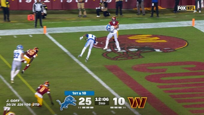 Jared Goff conectó con Jameson Williams para un touchdown de 14 yardas, ampliando la ventaja de los Detroit Lions sobre los Washington Commanders.