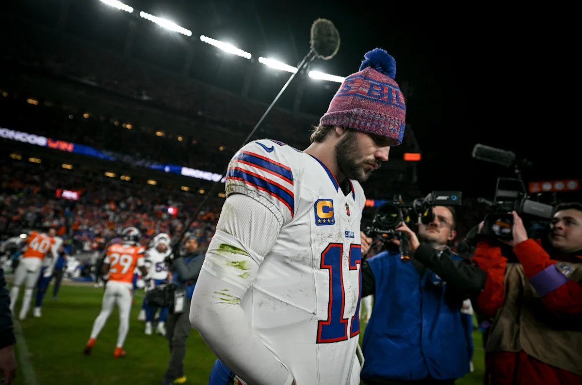 Josh Allen abandona el campo después de que la temporada de los Bills terminó con una derrota en los playoffs ante los Broncos. (Foto de AAron Ontiveroz/The Denver Post)