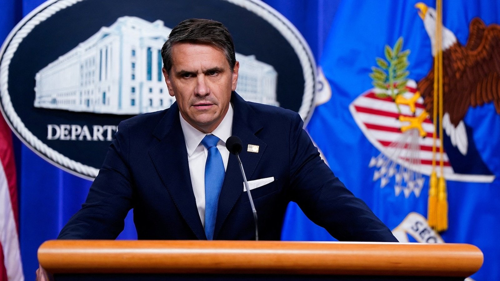 El fiscal general Todd Blanche habla durante una conferencia de prensa en el Departamento de Justicia en Washington, el 30 de enero de 2026.