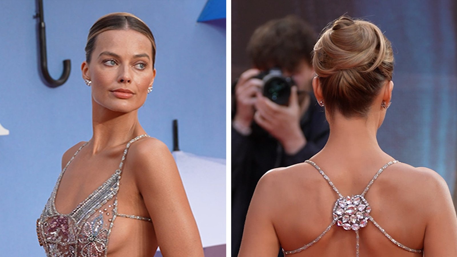 Tienes que ver las fotos solo … Margot está brillando desde el cofre hasta los dedos de los pies con un vestido brillante, con joyas que oscurecen la tela de otro modo completamente transparente.