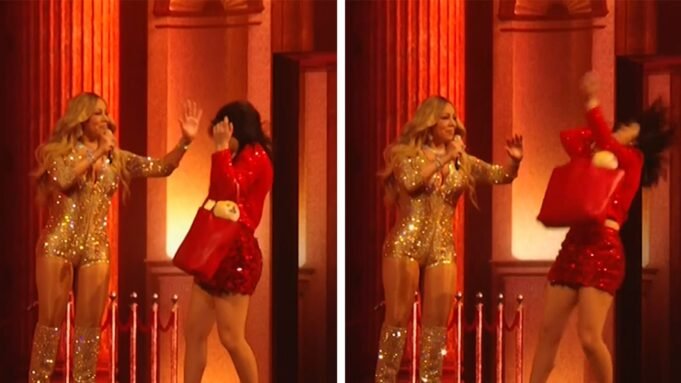 Bueno, tal vez no se repitió lo suficiente … porque la falsa bofetada de Mariah estaba fuera de tiempo, y se veía bastante crujiente. Parecía ser perjudicada y se alejó de la bailarina, que hizo todo lo posible para vender el movimiento con un fracaso caricatural en el suelo.