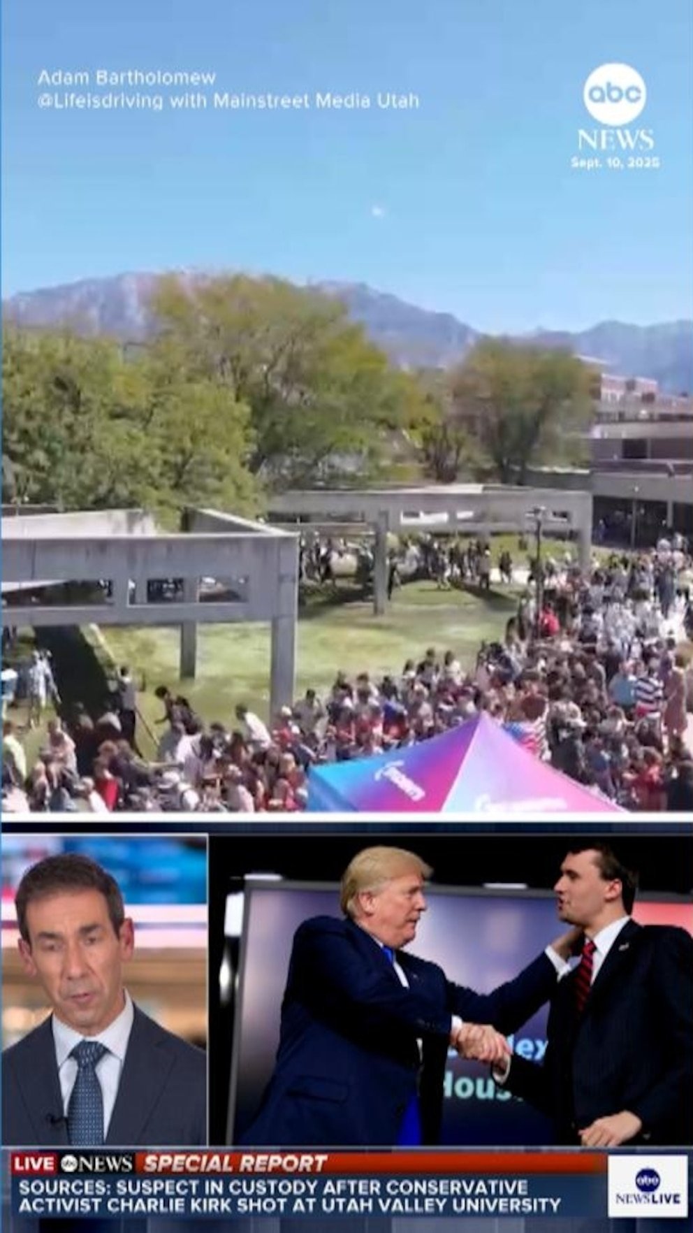 Las imágenes muestran a una multitud de personas que corren y se cubrieron después de que alguien recurrió al comentarista conservador Charlie Kirk en el campus del Valle de la Universidad de Utah.