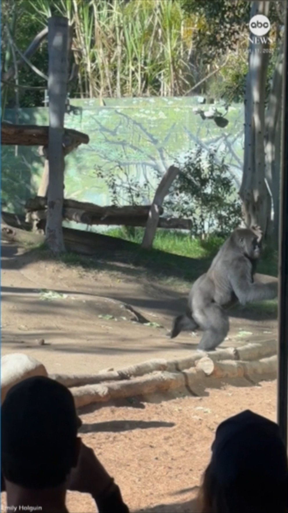 El video de un testigo capturó el impactante momento en que un gorila se abalanzó contra el vidrio en un recinto de observación del Zoológico de San Diego.