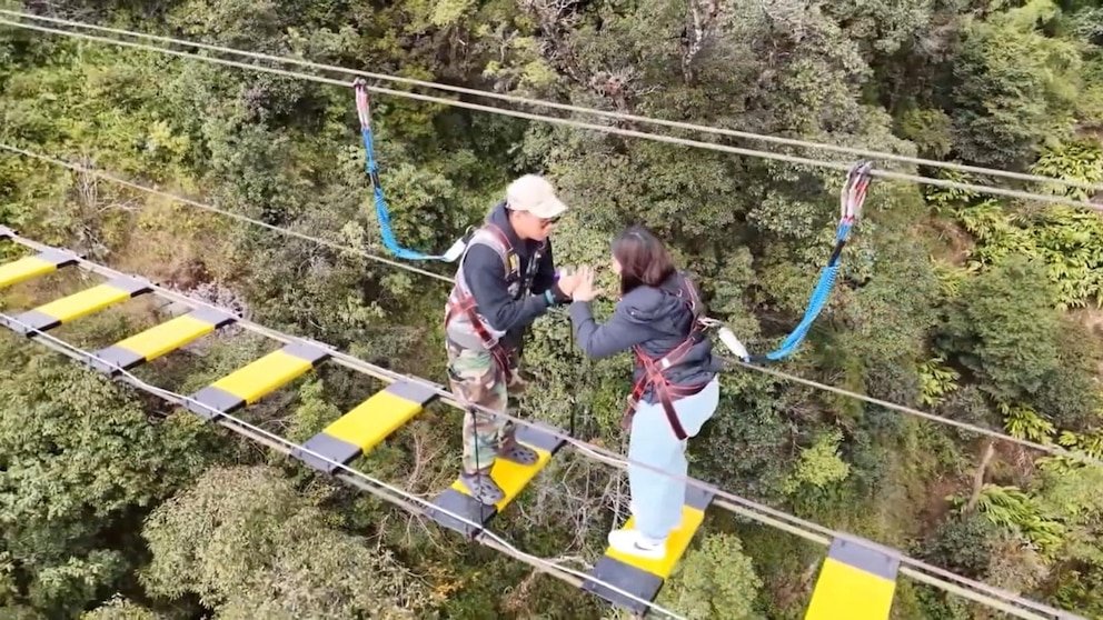Un hombre llegó a alturas increíbles para realizar el trabajo y propuso un puente de cuerda de 300 metros de altura en Vietnam.