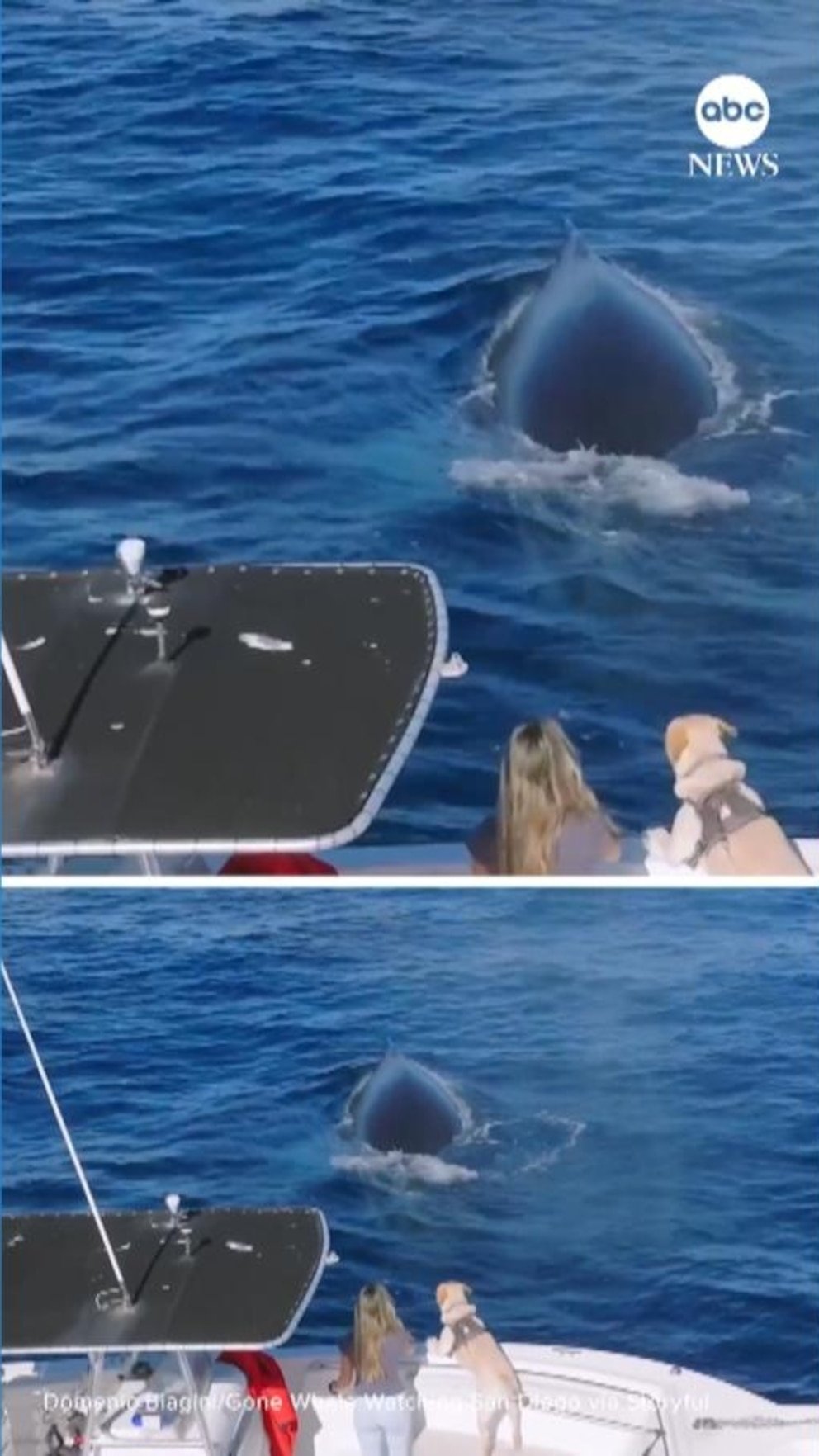 Un cachorro de rescate marítimo llamado Fin tuvo un encuentro cercano con ballenas y delfines frente a la costa de San Diego a principios de este mes.