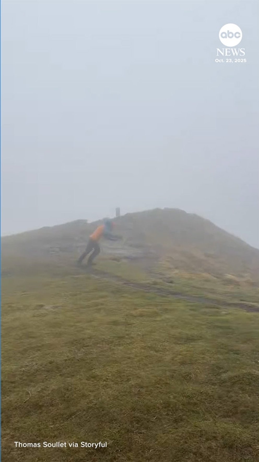Los fuertes vientos que soplaban en el centro de Francia dificultaron que el hombre que se ve en este video permaneciera de pie, y mucho menos avanzar.