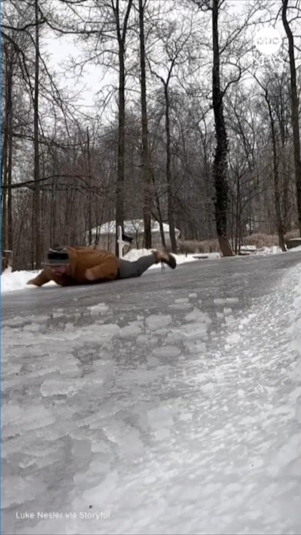 Un hombre de Virginia Occidental aprovechó las gélidas temperaturas para deslizarse por el camino de entrada “como un pingüino”.