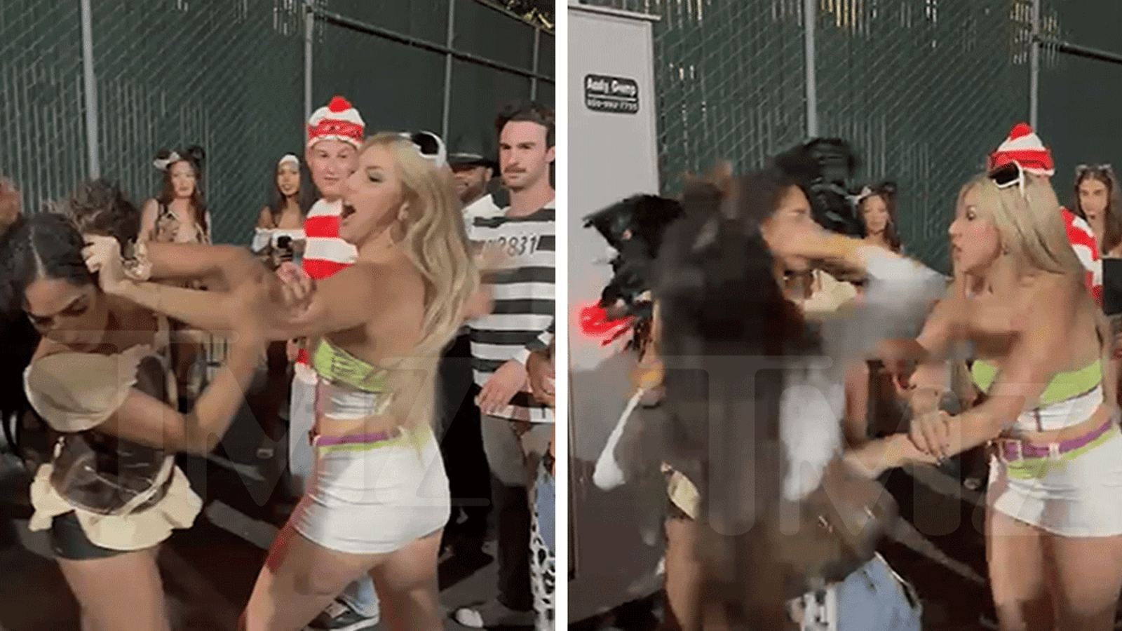 TMZ obtuvo el clip, y todo sucedió afuera del baño en la fiesta de Unruly Agency/Memehouse Productions en CBS Studios el sábado por la noche… donde un asistente a la fiesta vestido como pirata fue sorprendido empujando a una rubia vestida como Buzz Lightyear, quien se giró en estado de shock y gritó: «Hermano, ¿qué carajo?»