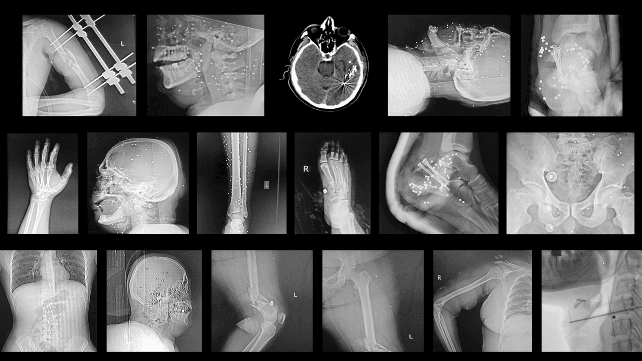 El personal médico comenzó a llevar discretamente sus propios registros. Un trabajador de un hospital en la ciudad norteña de Rasht me dijo que fotografió cientos de pruebas, incluidas tomografías computarizadas y rayos X, en dos departamentos de emergencia donde trabajó como voluntario durante la masacre. “Quiero que el mundo sepa que estas personas existieron y que pagaron el precio de su libertad”, me dijo el empleado, a quien llamaré Anush. Hasta ahora, ha recopilado los registros de casi quinientos pacientes ingresados, la mayoría de los cuales sufrieron traumatismos. Las imágenes y escaneos que compartió conmigo pintan un cuadro extraño de las escenas distópicas que presenció en enero: una radiografía mostró una bala destrozando el fémur de una madre de cuarenta y siete años, que había tratado de proteger a su hijo de los disparos. Un escáner cerebral mostró que una bala de metal cegó parcialmente a una enfermera después de que le dispararan en la cabeza cuando salía del hospital. «Estos barrios parecían una zona de guerra, dirigida por matones del régimen», dijo Anush. Agentes vestidos de civil siguieron a los manifestantes hasta los quirófanos y luego los arrestaron una vez finalizado su tratamiento médico. En varias ocasiones, Anush dijo que vio a agentes de policía intervenir durante la cirugía, lo que provocó peleas con el personal médico. Un médico interno fue hospitalizado luego de recibir un disparo con una bala de plomo metálico a quemarropa.