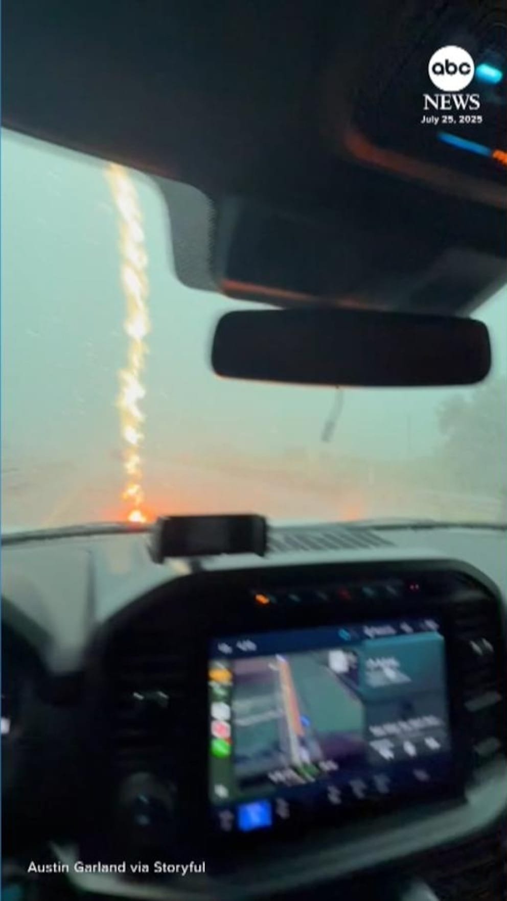Un conductor capturó el dramático momento en que Lightning golpeó el capó de su automóvil mientras conducía en un clima tormentoso en una carretera en Texas.