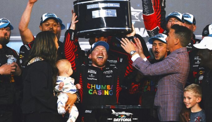 “Mi compañero de equipo Riley Herbst me dio muchos golpes allí y luego trató de ganar la carrera por sí mismo, como debería al final”, dijo Reddick. «Simplemente sorprendente cómo todo se unió. Simplemente la verdadera locura de Daytona».