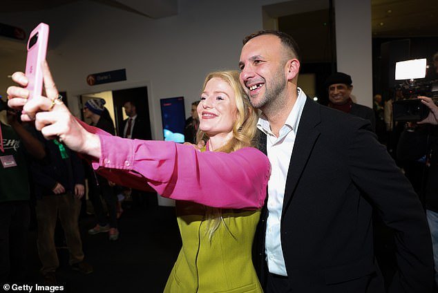 Hannah Spencer celebra esta mañana su histórica victoria con el líder del Partido Verde, Zack Polanski.