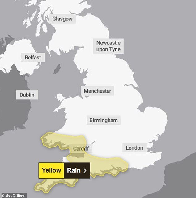 Un área que cubre alrededor de 30 regiones desde Pembrokeshire en el oeste de Gales hasta Hampshire ha sido puesta bajo alerta amarilla.