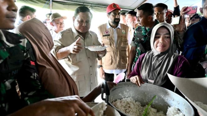 Luego, el presidente Prabowo fue a la cocina pública para inspeccionar directamente los preparativos para la distribución de alimentos a los refugiados. Allí, el presidente habló con los voluntarios y se aseguró de que las existencias logísticas siguieran disponibles. El Jefe de Estado incluso probó el arroz y el atún, el menú del almuerzo preparado para los refugiados.