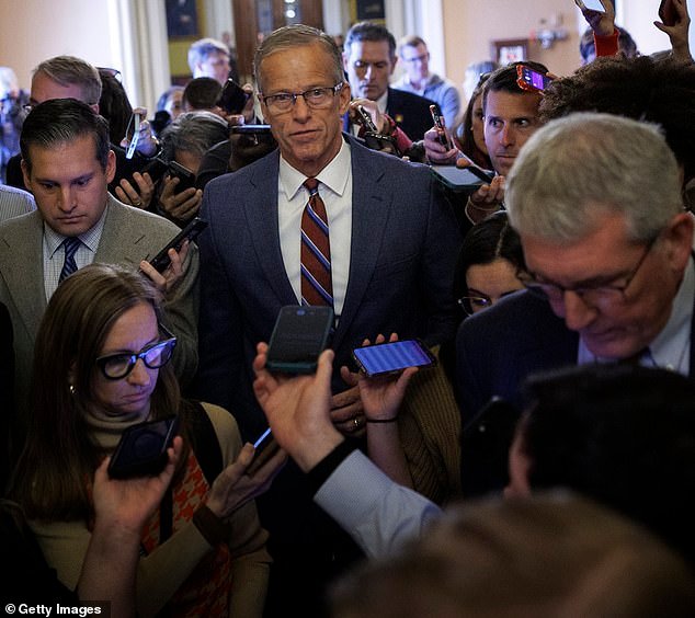 El Senado de Estados Unidos votó el lunes por la tarde para poner fin al cierre récord del gobierno tras un acuerdo alcanzado por un grupo de demócratas contra el líder Chuck Schumer. En la foto: el líder de la mayoría del Senado, John Thune.