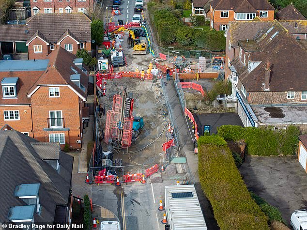 En la noche del 17 de febrero del año pasado, se abrió un socavón de 20 metros de largo y seis metros de ancho en Godstone High Street, que se llenó rápidamente con agua de una tubería reventada y obligó a 30 residentes a abandonar sus hogares.