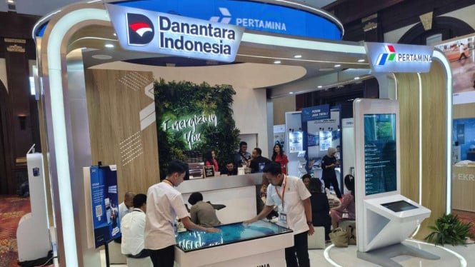 El stand de Pertamina aparece con un diseño moderno y contenidos informativos sobre los servicios de información de Pertamina. La información presentada es atractiva y fácil de entender para los visitantes de la exposición. Además, los visitantes también pueden probar diversas actividades interactivas que se ofrecen.