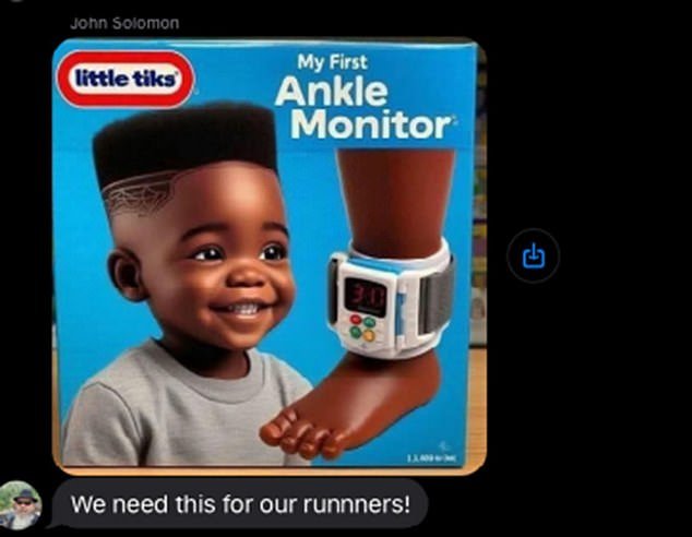 En el texto del gato del grupo de 11 miembros, Salomon incluía una foto de un dibujo negro en caminar mientras usaba un monitor de tobillo en un pie, según el mensaje obtenido por El poste de Long Beach.