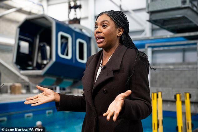 El líder conservador Kemi Badenoch durante una visita a 3T Training Services en Aberdeen
