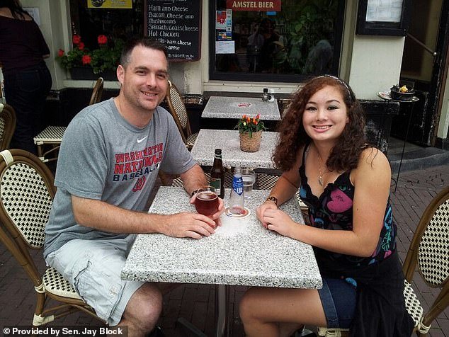 El senador estatal de Nuevo México, Jay Block, dijo que su familia estaba «desgarrada» por los ataques «desagradables» de su hija Maddie contra él en política, diciendo que había traído amenazas de muerte y visitas al FBI. Están representados juntos en momentos más felices durante un viaje a Maison Anne Frank