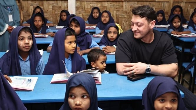 Bangladesh, VIVA – La ex estrella del Arsenal y campeón mundial de 2014, Mesut Oezil, mostró su preocupación por las cuestiones humanitarias visitando el campo de refugiados rohingya en Cox’s Bazar, Bangladesh. La visita coincidió con el primer día del mes sagrado del Ramadán.